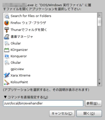 NautilusなどのGUIファイルマネージャやbinfmt_misc(関連記事)ではファイルの種類に応じてそれを開いたときに、関連付けられたアプリケーションに引数としてそのファイルを渡すことができる。しかし、.exeファイルの場合 Wine上で動作するWindows向けの実行…